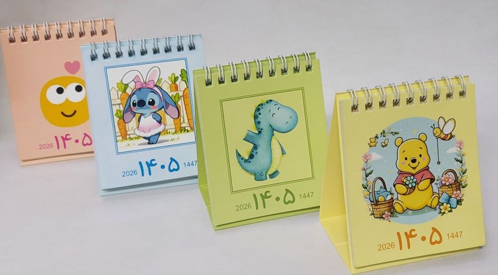 تقویم رومیزی ایموجی با ابعاد کوچک 8.5 در 9.5 سانتیمتر در 4 رنگ به چاپ رسیده است.